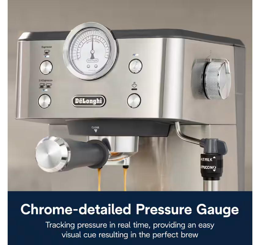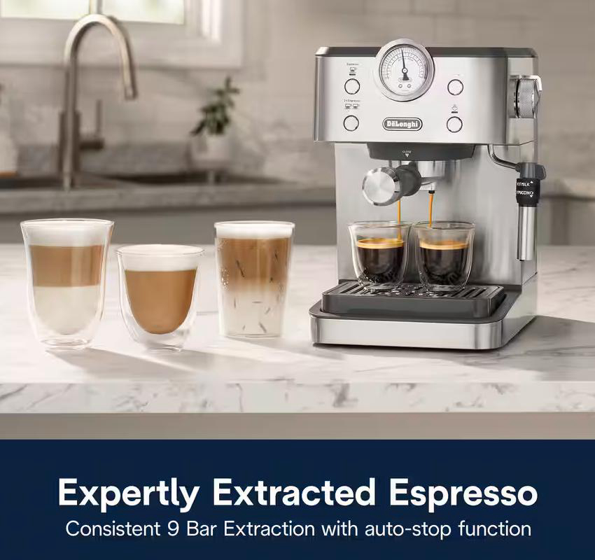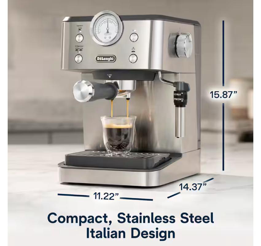 De'Longhi Linea Classic opremljena je Thermoblock tehnologijom za brzo zagrijavanje i veću stabilnost temperature za vrhunsku kvalitetu u šalici. Ovaj vrhunski kompaktni aparat za kavu stvorit će vaš savršeni espresso s bogatom aromom i kremom boje orašastih plodova na vrhu. Dvostruke stijenke filter košara i portafilter od nehrđajućeg čelika (kapacitet do 20 g kave) za veću kontrolu ekstrakcije kave i bogatiji, intenzivniji okus kave. Kompaktni talijanski dizajn od nehrđajućeg čelika ima elegantne, čiste linije koje se besprijekorno uklapaju u bilo koji kuhinjski prostor ili stil. Postignite stručno ekstrahirani espresso s talijanskom profesionalnom pumpom od 15 bara koja pruža konzistentnu ekstrakciju od 9 bara s funkcijom automatskog zaustavljanja za vaša omiljena pića - latte, cappuccino, ledeni karamel macchiatos, espresso martini i još mnogo toga. Trenutačno postignite savršenu temperaturu zahvaljujući Thermoblock tehnologiji koja omogućuje brzu, preciznu i stabilnu kontrolu temperature.
