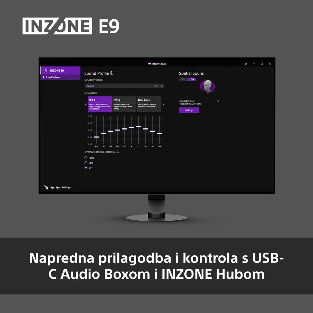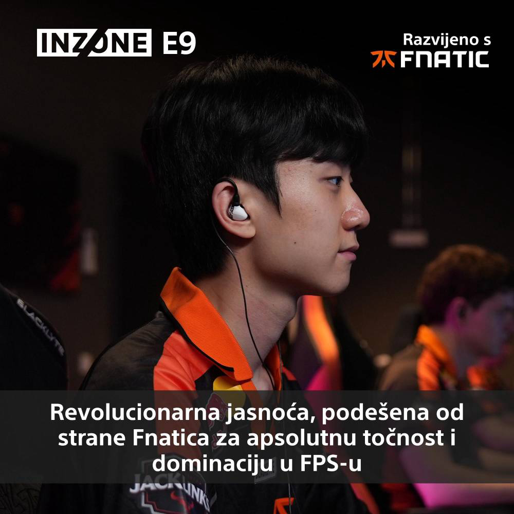 Razvijene u suradnji s Fnaticom i podešene za elitno FPS igranje, INZONE E9 vas štiti svojim vrhovima koji izoliraju buku i potpuno zatvorenom strukturom. Svaki zvuk je izoštren. USB-C audio kutija omogućuje 7.1-kanalni virtualni surround i prilagođene postavke putem INZONE Huba. Zajednički osmišljeno u žaru natjecanja. Od akustičnog dizajna do pristajanja, Fnatic-ove povratne informacije oblikovale su svaki detalj za vrhunske performanse. Naše prvo zatvoreno tijelo i vrhovi koji izoliraju buku blokiraju svijet, bilo da se radi o buci publike na turniru ili ometanjima kod kuće. S oblikovanjem zvuka od strane elitnih igrača, INZONE E9 osigurava da uhvatite korake, ponovno punjenje i udaljene prijetnje prije nego što vas uhvate. Podešeno za potpunu svjesnost o FPS-u.