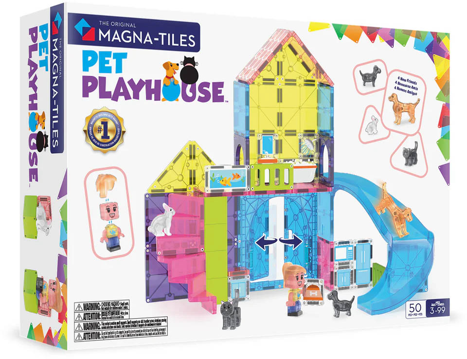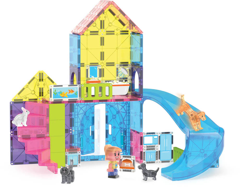 Zakoračite u svijet u kojem su kućni ljubimci tu da se igraju, a kreativnost ne poznaje granice. S MAGNA-TILES kućicom za kućne ljubimce, djeca mogu izgraditi savršeni raj za razigrano štene, znatiželjnu mačku, zečića koji se skače i njihovog avanturističkog prijatelja psa. Otvorite dvostruka vrata kućice za igru ??u kojoj se vaši ljubimci penju po namještaju, klize niz novi tobogan i istražuju prostor ispunjen beskrajnim maštovitim mogućnostima.