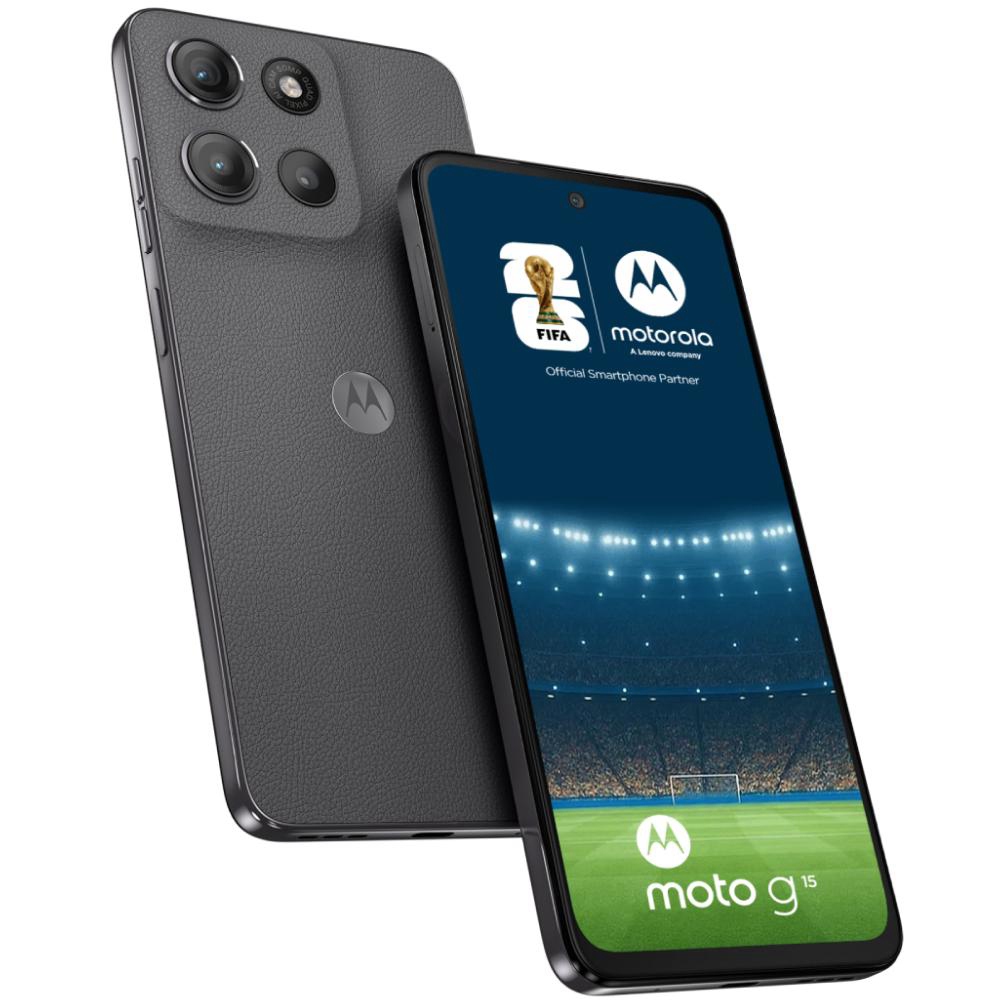 Motorola Moto G15 je pametni telefon srednje klase s 6,72-inčnim IPS LCD zaslonom i Full HD+ rezolucijom. Pokreće ga MediaTek Helio G81 čipset, uz opcije od 4 GB ili 8 GB RAM-a i 128 GB, 256 GB ili 512 GB interne memorije. Ima dvostruku stražnju kameru s 50 MP glavnim senzorom i 5 MP ultraširokokutnom kamerom, te prednju kameru od 8 MP. Baterija kapaciteta 5200 mAh omogućuje dug rad, dok punjenje ide do 18 W. Uređaj dolazi s Android 15, stereo zvučnicima, 3,5 mm priključkom i podrškom za NFC i FM radio. Dostupan je u više boja i ima moderni dizajn s plastikom i ekološkom kožom. Nano-SIM + Nano-SIM