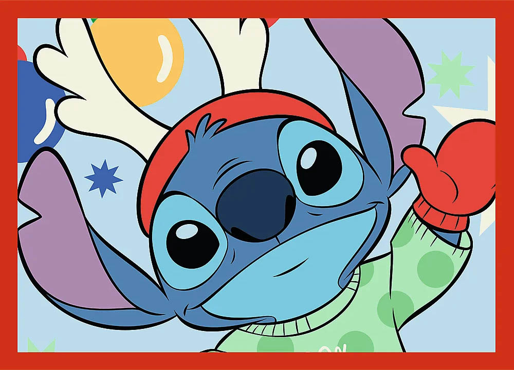 Lilo i Stitch Božić je kolekcija od četiri neovisne slagalice za djecu, dizajnirane za mlade ljubitelje Lilo i Stitch avantura. Nakon sastavljanja, puzzle će stvoriti slike veličine 28,5 x 20,5 cm. Različit broj dijelova omogućuje igru i mlađoj i malo starijoj djeci. Puzzle se proizvode od ekološki prihvatljivih materijala. Preporučena dob: 4 ili više godina.