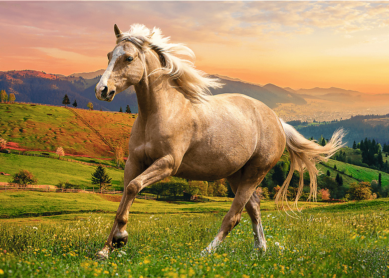 Puzzle s 500 komada koje prikazuju galopirajućeg konja prilikom zalaska sunca. Nakon slaganja nastaje slika dimenzija 480 x 340 mm. Puzzle su izrađene od visokokvalitetnih materijala, uz korištenje posebnog kalandranog svjetloreflektirajućeg papira koji olakšava polaganje. Proizvod je proizveden u Poljskoj, a za proizvodnju su korišteni ekološki materijali. Preporučena dob: 8 ili više godina.