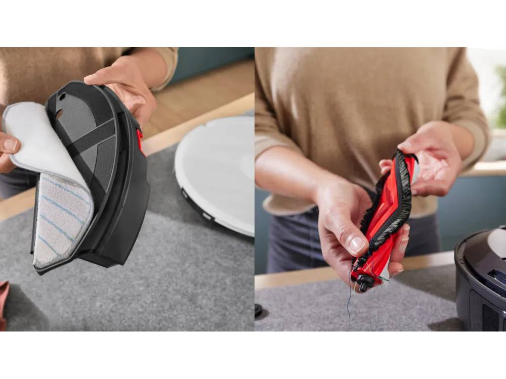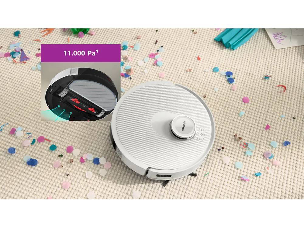 Zaboravite na prljavštinu s bilo koje vrste podova uz Carbon Power Brush koja ima tanke, gusto poredane čekinje za dubinsko čišćenje. Od malih čestica do oblaka prašine, bilo na tepisima ili tvrdim podovima, ova snažna četka rješava svakodnevni nered prije nego što se prašina stigne slegnuti. Funkcija smanjenog zapetljavanja omogućava nesmetano čišćenje sprječavanjem zapetljavanja dlaka u četki i smanjenjem blokada. Pomaže robotu da učinkovito usisava dlake, usmjeravajući ih u spremnik za prašinu, umjesto da ih rasprši po podu. Doživite snagu usisavanja od 11.000 Pa. Bosch Spotless pruža pouzdanu i snažnu usisnu snagu koja se lako nosi s prašinom, prljavštinom i ostacima na bilo kojoj površini. Uz Bosch Spotless, dobivate dubinsko čišćenje kojem možete vjerovati. Robotski usisavač trebao bi raditi sve, zar ne? Bosch Spotless ispunjava tu potrebu. Njegovo dvostruko djelovanje sa Static Wet Mop učinkovito uklanja prljavštinu i prašinu, ostavljajući površine čiste i sjajne. Idealno za sve vrste tvrdih podova, uključujući pločice, laminat i drvene podove.
