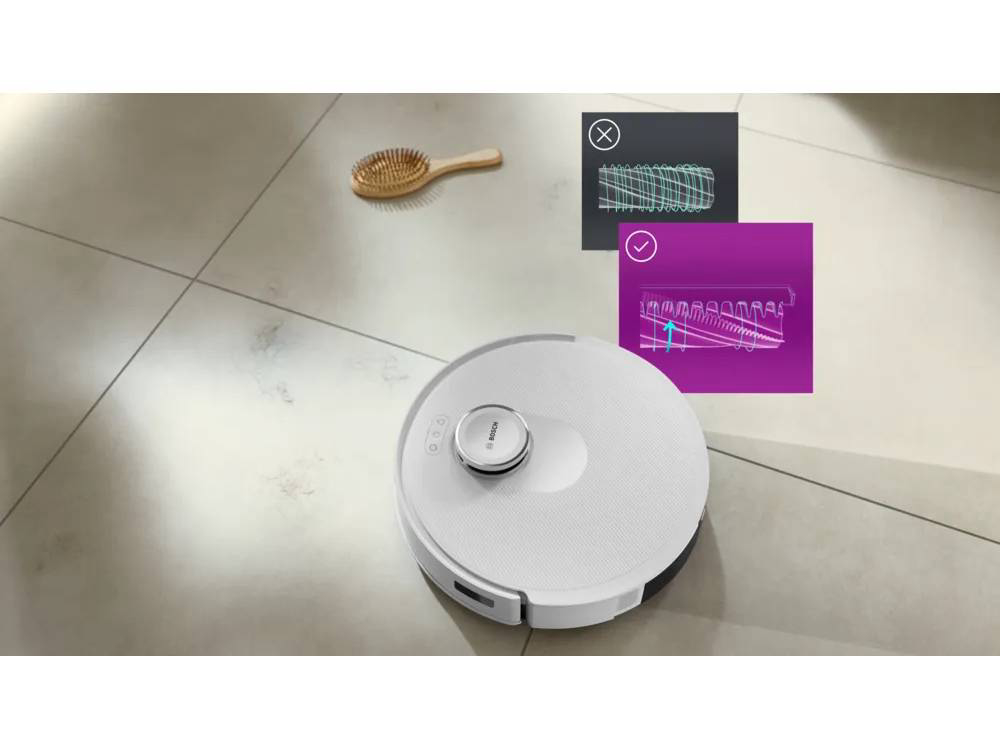Zaboravite na prljavštinu s bilo koje vrste podova uz Carbon Power Brush koja ima tanke, gusto poredane čekinje za dubinsko čišćenje. Od malih čestica do oblaka prašine, bilo na tepisima ili tvrdim podovima, ova snažna četka rješava svakodnevni nered prije nego što se prašina stigne slegnuti. Funkcija smanjenog zapetljavanja omogućava nesmetano čišćenje sprječavanjem zapetljavanja dlaka u četki i smanjenjem blokada. Pomaže robotu da učinkovito usisava dlake, usmjeravajući ih u spremnik za prašinu, umjesto da ih rasprši po podu. Pozdravite sjajne podove. Vibrirajuća mokra krpa dizajnirana je za učinkovito mokro čišćenje, lako uklanjajući osušene tekućine i tvrdokorne mrlje. Savršena za sve vrste tvrdih podova, uključujući pločice, laminat i drvene podove. Doživite snagu usisavanja od 11.000 Pa. Bosch Spotless pruža pouzdanu i snažnu usisnu snagu koja se lako nosi s prašinom, prljavštinom i ostacima na bilo kojoj površini. Uz Bosch Spotless, dobivate dubinsko čišćenje kojem možete vjerovati.