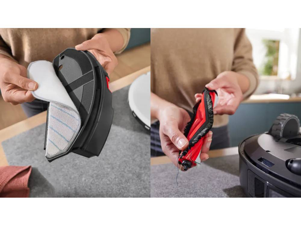 Zaboravite na prljavštinu s bilo koje vrste podova uz Carbon Power Brush koja ima tanke, gusto poredane čekinje za dubinsko čišćenje. Od malih čestica do oblaka prašine, bilo na tepisima ili tvrdim podovima, ova snažna četka rješava svakodnevni nered prije nego što se prašina stigne slegnuti. Funkcija smanjenog zapetljavanja omogućava nesmetano čišćenje sprječavanjem zapetljavanja dlaka u četki i smanjenjem blokada. Pomaže robotu da učinkovito usisava dlake, usmjeravajući ih u spremnik za prašinu, umjesto da ih rasprši po podu. Pozdravite sjajne podove. Vibrirajuća mokra krpa dizajnirana je za učinkovito mokro čišćenje, lako uklanjajući osušene tekućine i tvrdokorne mrlje. Savršena za sve vrste tvrdih podova, uključujući pločice, laminat i drvene podove. Doživite snagu usisavanja od 11.000 Pa. Bosch Spotless pruža pouzdanu i snažnu usisnu snagu koja se lako nosi s prašinom, prljavštinom i ostacima na bilo kojoj površini. Uz Bosch Spotless, dobivate dubinsko čišćenje kojem možete vjerovati.