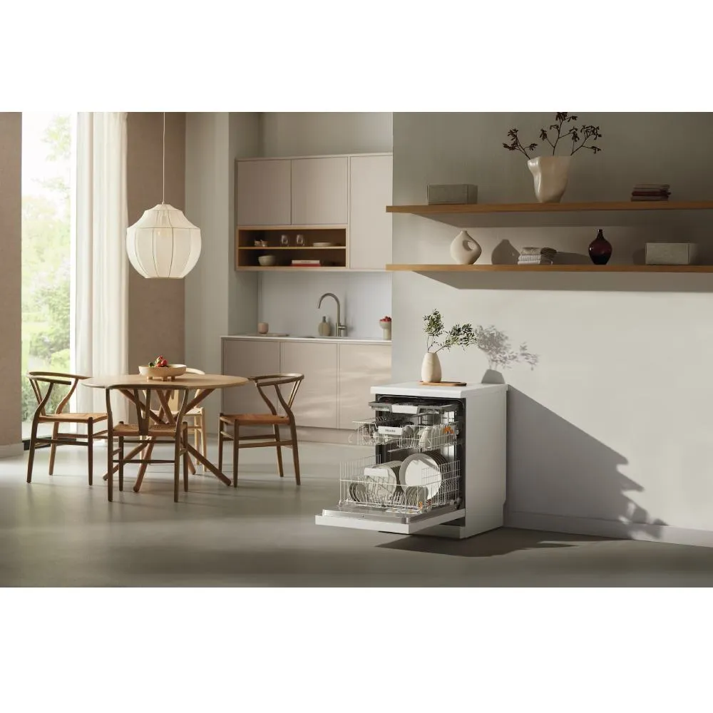 Miele G 5811 SC Active Plus je samostojeća perilica posuđa širine 60 cm koja kombinira visoku učinkovitost, brzinu i udobnost korištenja. Zahvaljujući QuickPowerWash programu, posuđe pere temeljito za manje od sat vremena, a AutoOpen funkcija automatski otvara vrata na kraju ciklusa za optimalno sušenje. Uz energetsku klasu A i EcoPower sustav, troši minimalnu količinu vode i energije, posebno uz priključak na toplu vodu. Unutrašnjost je fleksibilna s 3D MultiFlex ladicom za pribor i prilagodljivim košarama, što omogućuje slaganje do 14 kompleta posuđa. Radi tiho i pouzdano, a dodatne funkcije poput Extra Clean, Extra Dry i sigurnosni sustav protiv curenja čine je praktičnim izborom za svako kućanstvo.