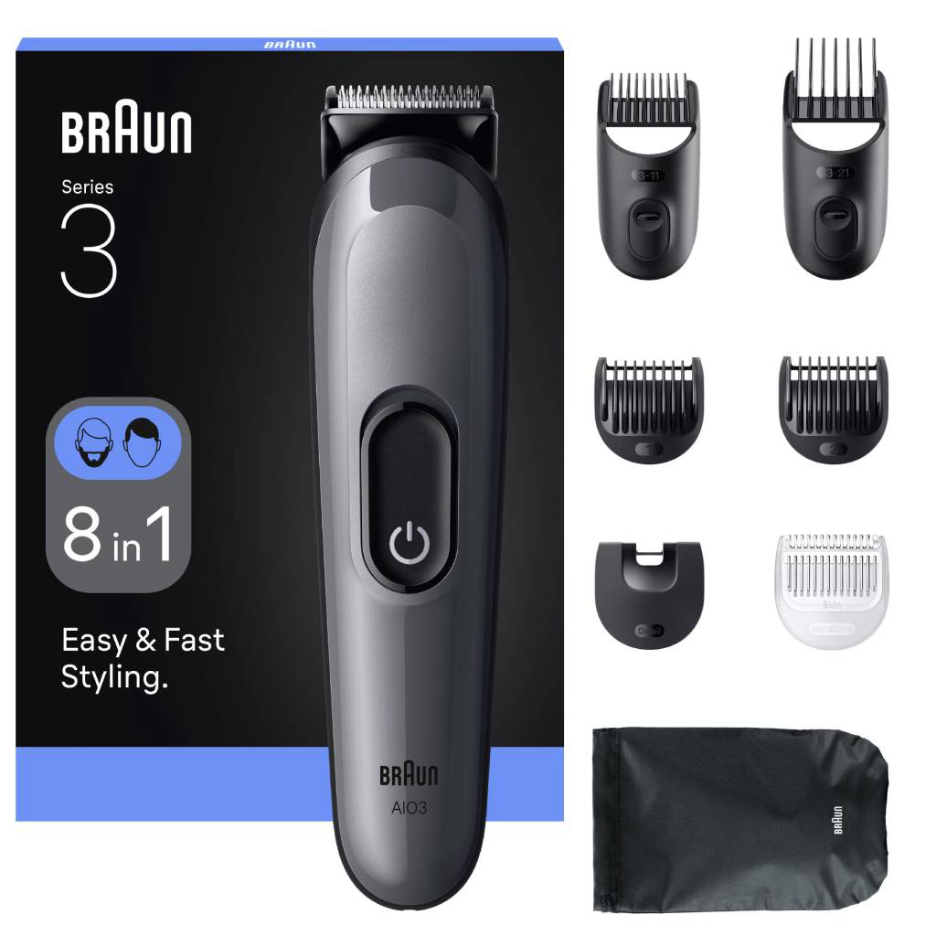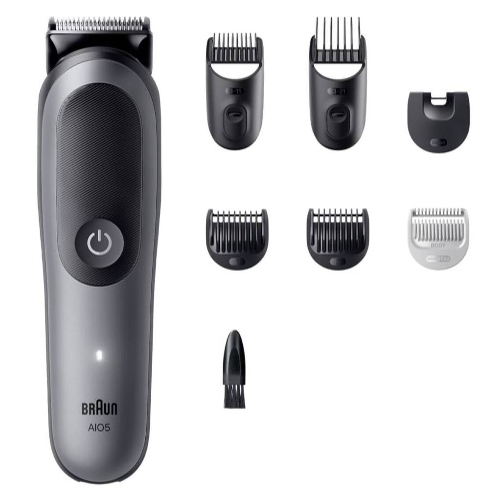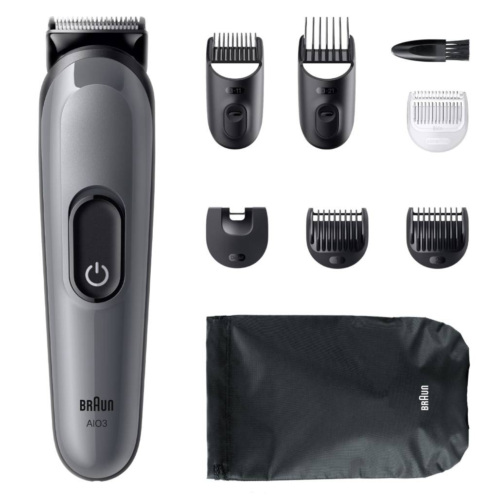 Braunov multifunkcionalni 7-u-1 komplet muškarcima omogućuje lako i jednostavno podrezivanje dlačica na licu, u nosu i u ušima, šišanje kose te uređivanje dlačica na cijelom tijelu. Iznimno oštra oštrica osigurava brzo i učinkovito, ali i ugodno i precizno podrezivanje. Tehnologija SensitiveTrim brine o tome da savršeno i sigurno podrežete dlačice na cijelom tijelu. Možete birati između 14 duljina, a drška AquaGrip pruža vam potpunu kontrolu pod vodom. AIO5520 dolazi u sivoj boji mjesečevog kamena, stvoren je da traje, vodootporan je i ima litij-ionsku bateriju koja omogućuje do 120 minuta rada.