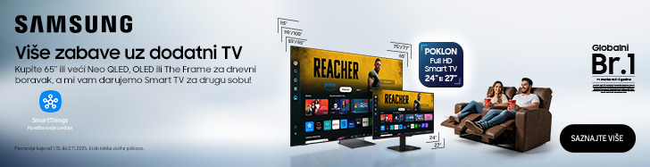 SERVISIRAN UREĐAJ!!! Televizor Samsung QE75QN95DA Neo QLED UHD 4K SMART TV svojim modernim dizajnom savršeno se uklapa u svaki prostor. Iskoristite više od svojeg televizora uz najnovije aplikacije i usluge na Samsung Tizen operacijskom sustavu. Uživajte u besplatnim televizijskim kanalima uživo i tisućama filmova i uz Samsung TV Plus. Novi vrhunski Samsung kanalni zvučnici pružaju doživljaj sveobuhvatnog zvuka sljedeće razine. Zajedno s Dolby Atmos tehnologijom vrhunski kanalni zvučnici isporučuju višedimenzionalni zvuk zahvaljujući kojem uranjate duboko u akciju. Gledajte što se prikazuje na televiziji i na pametnom telefonu, na istom zaslonu, istodobno. Jednostavno povežite svoj telefon za doživljaj višestrukog zaslona kao nikad prije. Također možete uživati u optimiziranom obavljanju više zadataka i istovremeno gledati sadržaj. U OVLAŠTENOM SERVISU IZVRŠENA ZAMJENA MATIČNE PLOČE