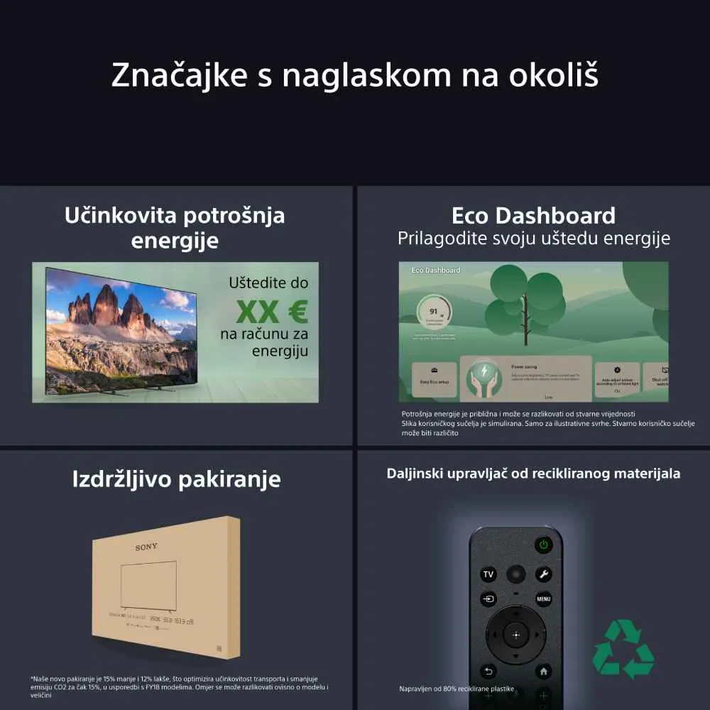Uživajte u slici poput one u kinu u vlastitom domu. Iskustvo na polju kvalitete slike proizvoda za kućnu zabavu omogućuje da se vjerno prenese vizija filmaša uz režime sustava Studio Calibrated razvijene u suradnji Sonyja i vodećih svjetskih usluga prijenosa sadržaja. Gledajte filmove, serije i sportska događanja uživo onako kako su to filmaši i producenti zamislili. Način rada Prime Video Calibrated Mode automatski kalibrira postavke slike prema onome što gledate, uključujući sportska događanja uživo, kako biste u vlastitom domu mogli uživati u studijskoj kvaliteti sadržaja usluge Prime Video. Prepustite se potpunom doživljaju. Funkcija nadogradnje na 3D surround zvuk oblikuje virtualni surround zvuk koji dolazi odozgo i sa strane koristeći za to samo zvučnike televizora.