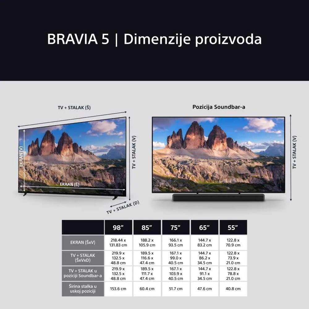Televizor SONY K-65XR55B BRAVIA 5 Mini LED 120 Hz 4K Google SMART TV PS5 Ready