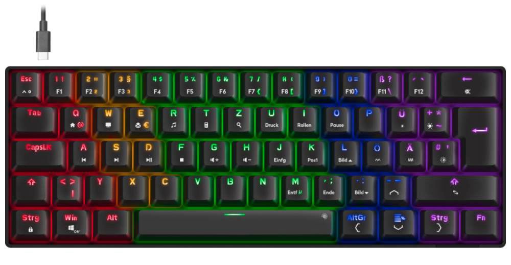 ATMOS RGB mehanička 60% tipkovnica donosi profesionalnu preciznost i maksimalnu uštedu prostora, čineći je idealnim izborom za gamere koji traže snažne performanse u kompaktnom formatu. Zahvaljujući mehaničkim brown prekidačima, tipkovnica pruža iznimno precizan odziv i dugovječnost do čak 50 milijuna pritisaka tipki.Rainbow RGB osvjetljenje s više podesivih efekata dodatno naglašava vizualnu privlačnost tipkovnice, dok FN tipka omogućuje pristup proširenim funkcijama, uključujući multimedijske kontrole. N-key rollover osigurava da svaki pritisak bude registriran bez pogreške – što je ključno za brzu i točnu igru.Njena kompaktna 60% veličina oslobađa prostor na stolu, a zahvaljujući čvrstoj čeličnoj ploči, podesivoj visini i protukliznim nožicama, ATMOS tipkovnica ostaje stabilna u svim situacijama. Odvojivi USB-C na USB-A kabel dužine 1,65 m dodatno pridonosi mobilnosti i praktičnosti.