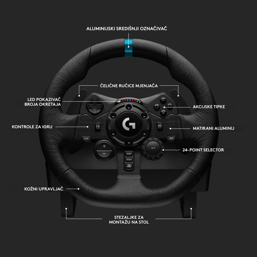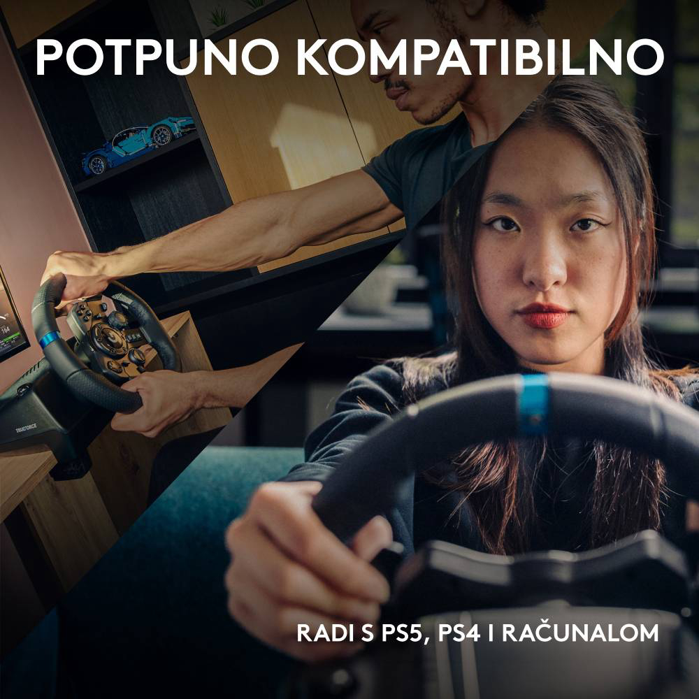 Logitech G923 dizajniran je kako bi se uključio u fiziku vaše igre pružajući vam neviđeni realizam. Napredni firmware prati svu struju koja teče kroz motore kotača kontinuirano prilagođavajući napon. Nadilazeći zadane postavke G923 pruža vrhunsku točnost i realizam bez presedana. Ugrađene LED diode u boji pokazuju vaš raspon okretaja u minuti u podržanim igrama. Podesite osjetljivost kotača, razine povratne sile i prilagodbu gumba putem moćnog G HUB Gaming softvera za PC.
