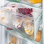 FrostSafe S FrostSafeom, izuzetno visoke i uklonjive ladice su zatvorene u cijelosti. To znači da se hladnoća ne može tako brzo rasipati kad se aparat otvori. Prozirna prednja strana pretinaca jamči optimalan pregled smrznutih predmeta. |