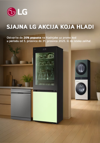 Ostvarite do 25% popusta na odabrani asortiman LG kućanskih uređaja Vrijedi od 05.12. do 31.12.2025. ili do isteka zaliha!