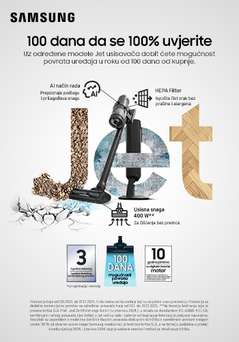 Više zabave uz dodatni TV i Samsung i 3 godine dodatnog jamstva Vrijedi od 01.10. do 02.11.2025. ili do isteka zaliha!