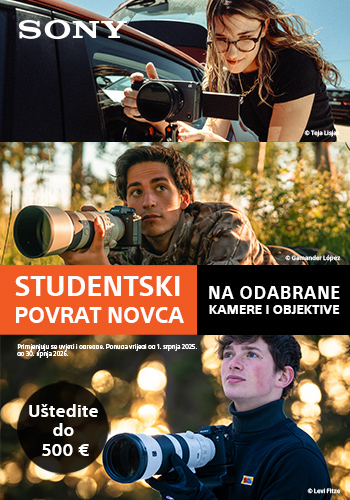 Ostvarite studentski povrat novca za odabrane Sony fotoaparate, objektive i pribor Vrijedi od 01.07.2025. do 30.06.2026. ili do isteka zaliha!