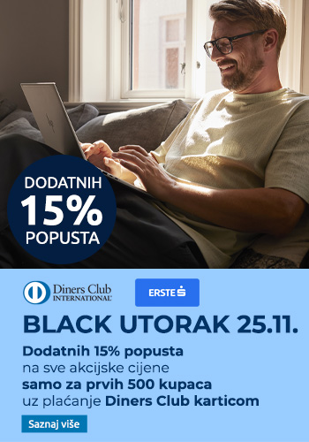 BLACK UTORAK 25.11. | Dodatnih 15% popusta na sve akcijske cijene uz plaćanje Diners Club karticom Vrijedi 25.11.2025. samo za prvih 500 kupaca!