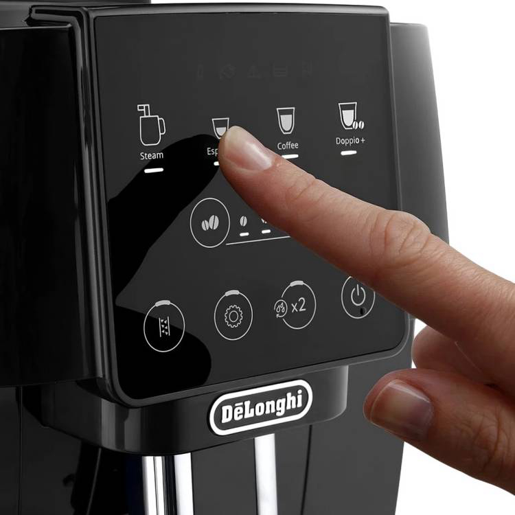 Aparat za espresso kavu DeLonghi ECAM 220.21.B Magnifica Start utjelovljuje De'Longhijevo iskustvo, znanje i tehnologiju kako bi uvijek ponudio najbolji rezultat u šalici. Ovaj aparat za kavu dizajniran je posebno za početnike koji su relativno novi u svijetu automatskih aparata za kavu i traže iskustvo jednim dodirom u kombinaciji s modernim dizajnom. „Magnifica Start“ zadovoljava svaki ukus zahvaljujući jednostavnom sučelju i prilagođenom izboru napitaka koji se brzo i jednostavno pripremaju. Istražite intuitivno sučelje i funkcionalnost ovog aparata za kavu uz pomoć četiri namjenske ikone recepata koje vam omogućuju pristup omiljenom napitku jednim dodirom. Magnifica Start ECAM220.21.B priprema espresso, espresso doppio, običnu crnu kavu, paru i vruću vodu za šalicu čaja.