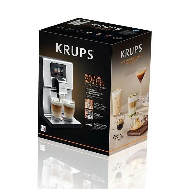 Aparat za kavu KRUPS EA879NE0 napredni je automatski aparat za kavu koji vam omogućuje pripremu raznih napitaka, uključujući espresso, cappuccino i latte. Nudi jednostavno korištenje, visokokvalitetnu mljevenu kavu i prilagodljive postavke za optimalno iskustvo ispijanja kave. S 36 prilagođenih recepata za tople i hladne napitke, uživajte u svim osnovama, plus favoritima poput nitro kave, ledenog lattea i affogata. Uživajte u besprijekornim mliječnim napitcima uz sustav za pjenjenje mlijeka One Touch Cappuccino – potpuno integriran i jednostavan za čišćenje.