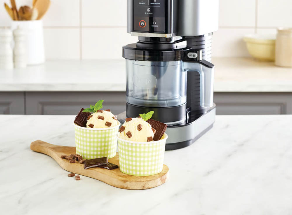 Uz Ninja NC302EU napravite ukusne domaće poslastice točno po svom ukusu, od bogatog sladoleda, kremastog gelata i raskošnih milkshakeova do glatkih sorbeta, smrznutog jogurta i još mnogo toga. Napravite svoje poslastice točno onako kako ih volite: raskošne, s niskim udjelom šećera, bez mliječnih proizvoda, keto, veganske, izbor je vaš. Nema nagađanja, jer je u kutiji priložen vodič za recepte, pun ukusnih recepata za svačiji ukus. Posebno dizajnirana lopatica za deserte pruža savršenu konzistenciju svaki put. Lopatica se automatski pomiče kroz smrznutu podlogu, a zatim se vraća natrag za optimalne rezultate, pretvarajući ledene čestice u kremaste smrznute poslastice u nekoliko minuta. Intuitivni zaslon osjetljiv na dodir olakšava odabir programa, dok traka napretka na zaslonu pokazuje kada je vaša poslastica spremna za uživanje. Ovaj moderni, kompaktni aparat elegantan je dodatak svakoj kuhinji.