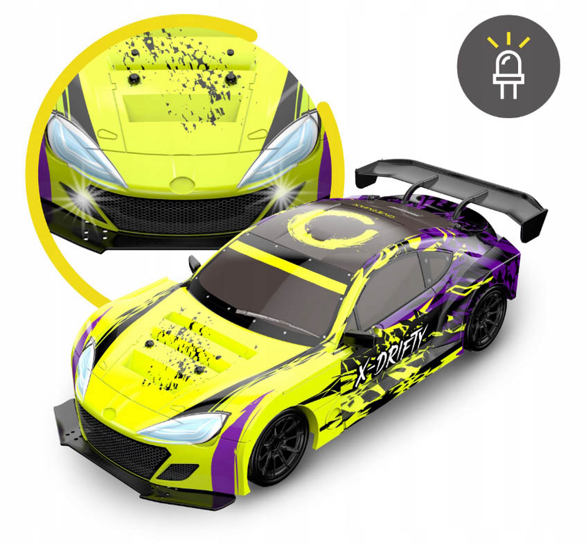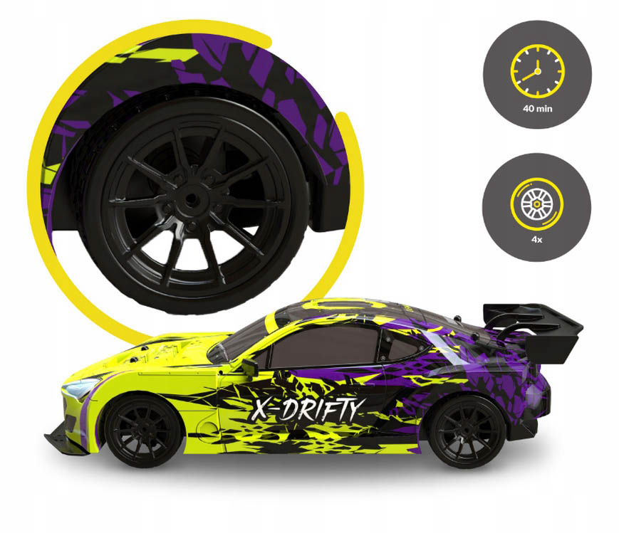 X-Drifty s pogonom na sva četiri kotača jamči vrhunsko upravljanje tijekom brzih sportskih utrka. S gumenim gumama, savršenim za utrke, i tvrdim gumama za spektakularne driftove, postiže brzinu od 20 km/h u tren oka!