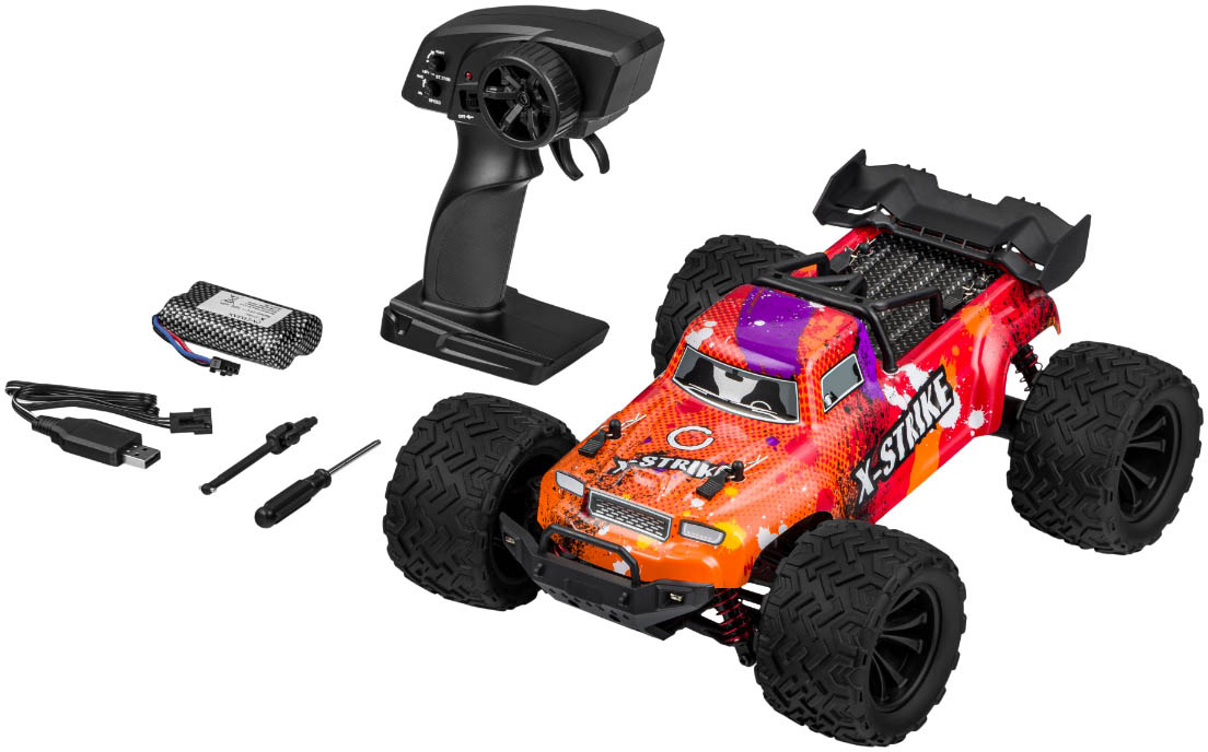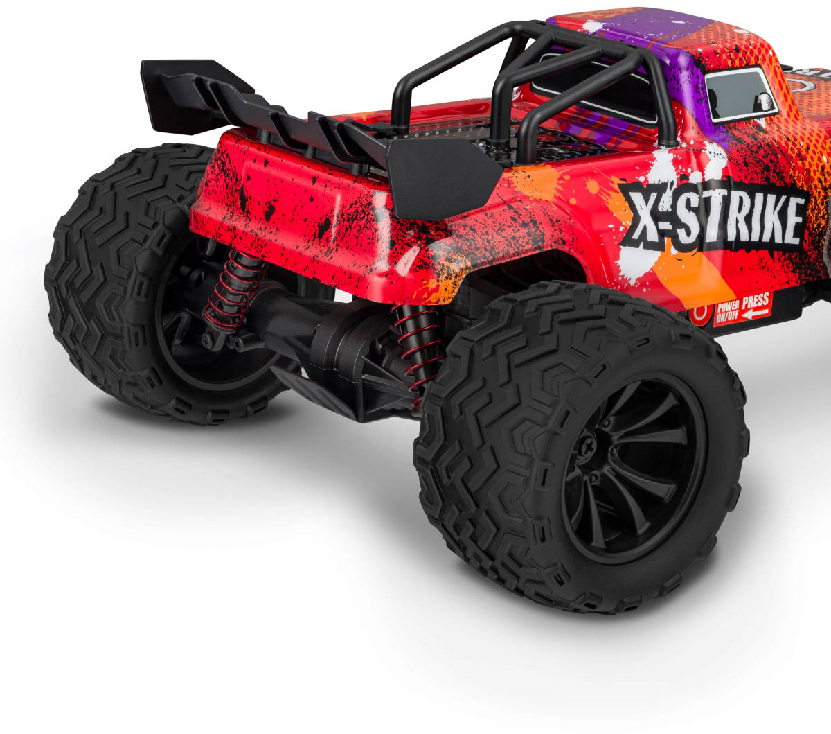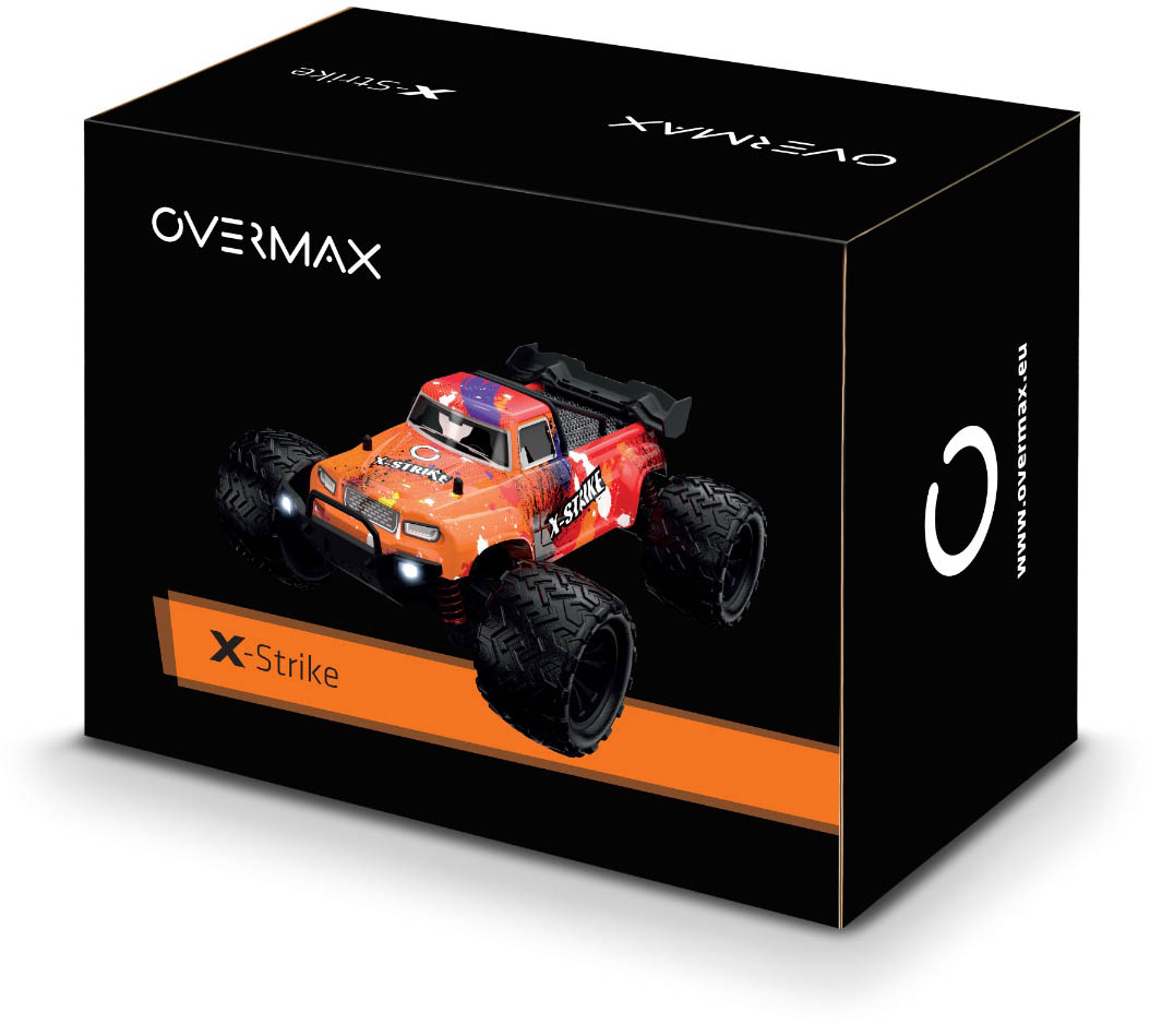 Overmax X-Strikea, izrađen je u mjerilu 1:16. Automobil s pogonom na 4x4 ima velike, terenske kotače visoke 8 centimetara i široke 5 metara, tako da će se dobro snaći tijekom igre izvan ceste.
