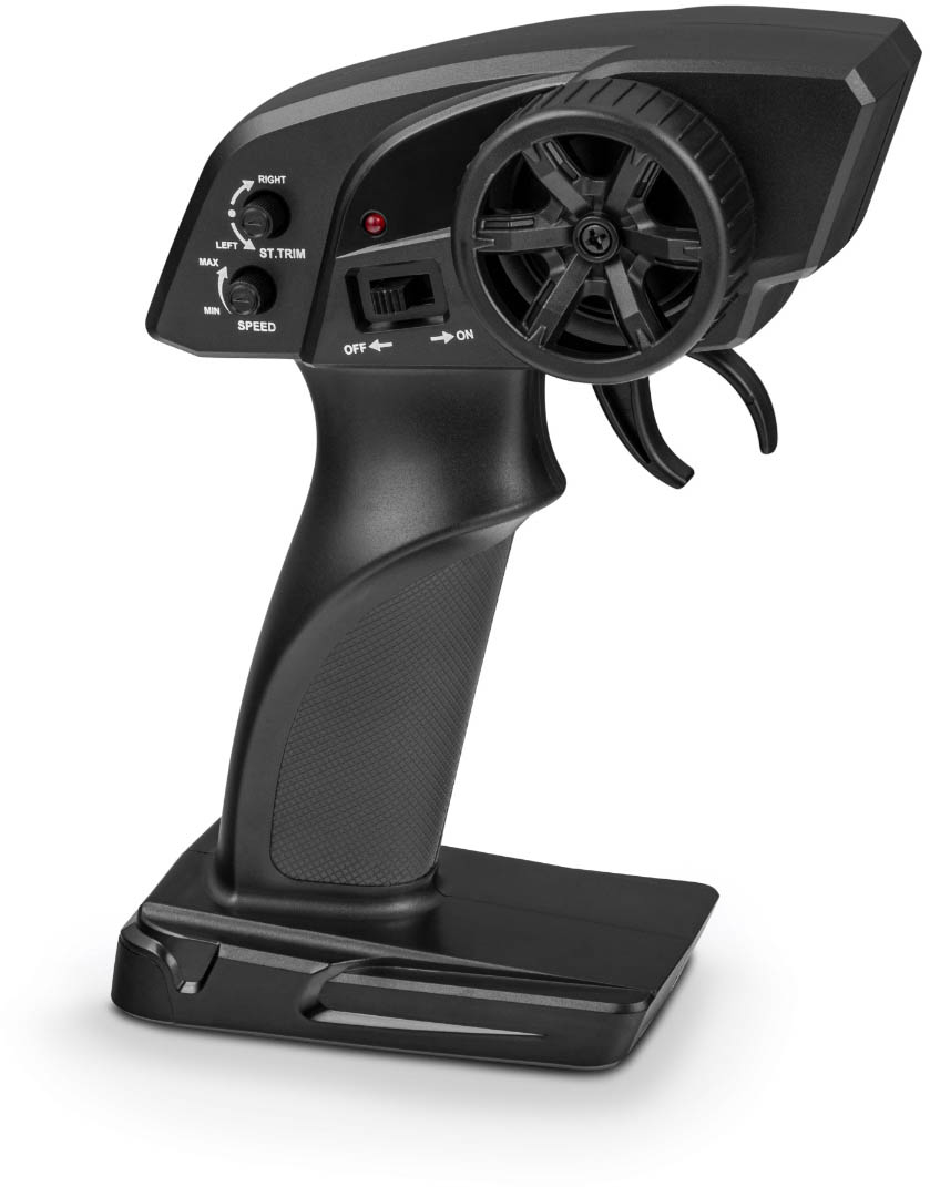 Overmax X-Strike dolazi s trimerom za kontrolu razmaka i nagiba kotača, što jamči potpunu kontrolu nad automobilom i njegovom brzinom.