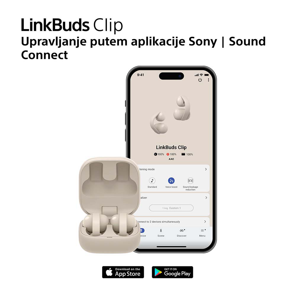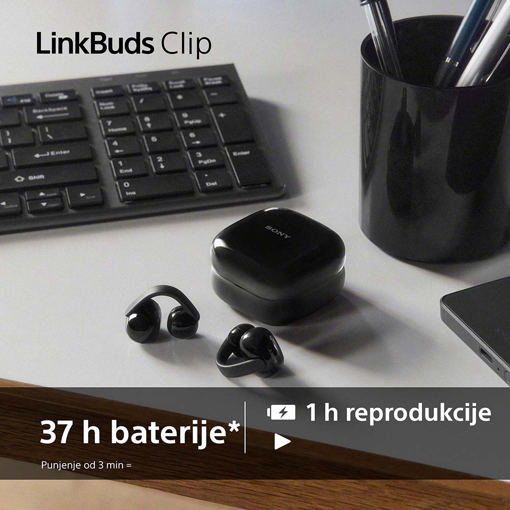 Doživite slobodu slušanja s otvorenim dizajnom. Ove iznimno lagane slušalice nježno se kopčaju na gornji dio ušne školjke, pružajući sigurno i gotovo neprimjetno prianjanje koje ne zatvara ušni kanal. Budući da ništa ne zatvara uši, zvuk prirodno prolazi, pa možete uživati u omiljenoj glazbi ili podcastima dok istovremeno ostajete potpuno svjesni svega što se događa oko vas. Svestrani dizajn kopče odgovara gotovo svakom obliku i veličini uha, a u pakiranju su uključeni i jastučići za dodatnu stabilnost kod manjih ušiju. Open-ear dizajn s kopčom toliko je prirodan i udoban da biste mogli zaboraviti da ih uopće nosite – bilo da obavljate svakodnevne obaveze, radite ili ste u šetnji. Tri svestrana načina slušanja mogu se aktivirati dodirom: Standard Mode donosi visokokvalitetnu reprodukciju glazbe, Voice Boost naglašava govor, a Sound Leakage Mode čuva vašu privatnost zvuka na tihim mjestima. Dizajnirane za praktičnost, LinkBuds Clip nude intuitivne kontrole dodirom i putem aplikacije, Adaptive Volume Control koji automatski prilagođava glasnoću okruženju te Quick Access Mode za trenutačan pristup playlistama na omiljenim streaming servisima. Uz pristup Gemini asistenta, vaš AI pomoćnik uvijek je spreman pomoći jednim brzim dodirom.