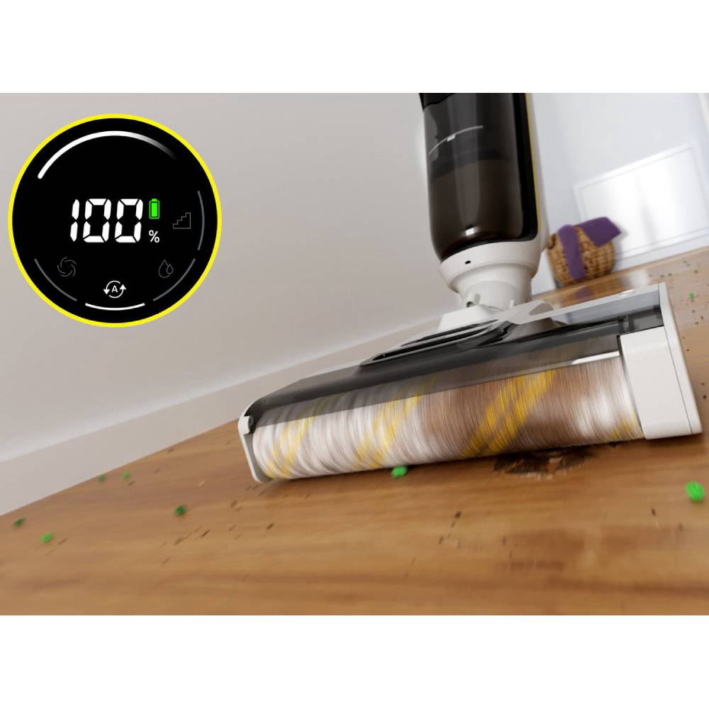 Otkrijte FCV 4 – svestrani uređaj koji će revolucionirati način na koji čistite svoje podove! Usisavač s krpom 3 u 1 s inovativnom Xtra!Clean funkcijom usisava, briše i suši, čineći čišćenje tvrdih podova, tepiha, pa čak i prolivenih tekućina lakim, štedeći do 50 posto vremena. Odaberite između četiri načina čišćenja – automatskog načina rada s Dynamic!Control senzorom prljavštine, pametnog načina rada Stair!Assist, načina rada za sušenje i snažnog Advanced!Power načina rada – i uhvatite se u koštac sa svakom prljavštinom, bilo da se radi o prašini, dlakama kućnih ljubimaca ili tvrdokornim mrljama. Vrhunska Hygienic!Spin tehnologija s do 500 okretaja valjka u minuti ne samo da osigurava savršene rezultate brisanja, već i uklanja do 99 posto bakterija** za higijensku čistoću. Snažan BLDC motor i dugotrajna baterija s do 45 minuta rada čiste do 200 četvornih metara bez prestanka. Također ima 3,2-inčni Vision!Clean zaslon, funkciju automatskog pokretanja/zaustavljanja i funkciju samočišćenja, kao i perivi Pure!Roll valjak za maksimalnu praktičnost – bez ikakvog kontakta s prljavštinom.