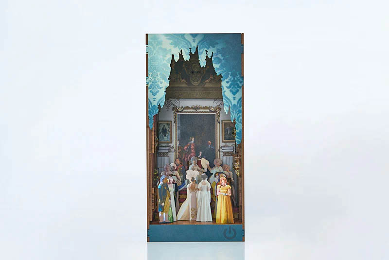 Revell Tiny Adventures Bridgerton The Duke and I, elegantan book nook 3D model za policu s knjigama inspiriran Netflix serijom Bridgerton. Riječ je o dekorativnoj mini diorami koja se slaže u romantičnu scenu u stilu regency ere i postavlja između knjiga, stvarajući dojam živog povijesnog svijeta na polici. Romantična regency dvorana salon iz Bridgerton svijeta, elegantna, viktorijanska atmosfera, 3D mini svijet koji se vidi između knjiga na polici, dekorativni prikaz inspiriran ljubavnom pričom The Duke and I. Bridgerton The Duke and I Revell Tiny Adventures book nook dekorativni LED osvijetljeni kolekcionarski 3D model za slaganje, namijenjen fanovima serije i ljubiteljima elegantnih, romantičnih diorama.