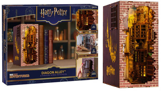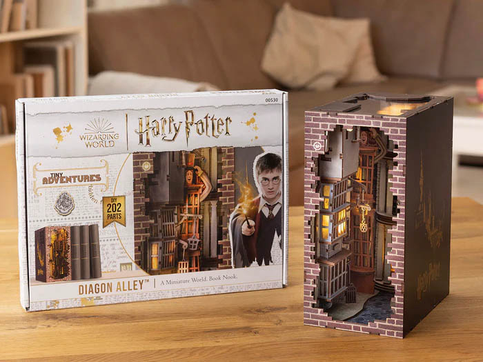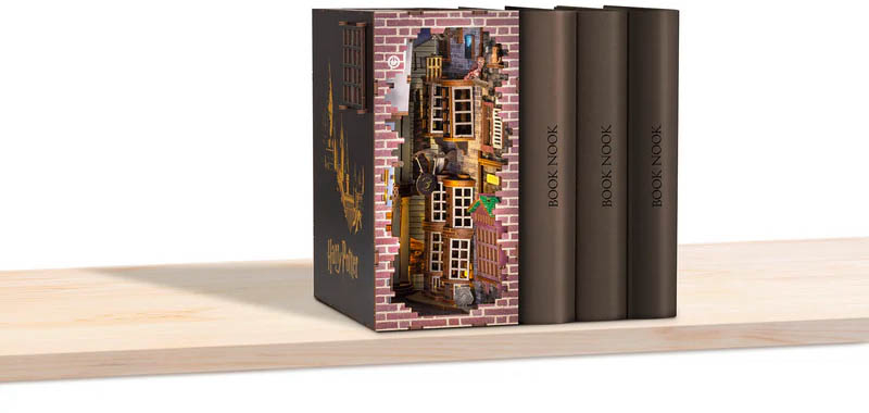 Book Nook Revell set prikazuje Diagon Alley iz svijeta Harryja Pottera kao detaljan 3D mini-diorama book nook model koji se postavlja između knjiga na polici. Radi se o dekorativnom i kolekcionarskom modelu koji se sastavlja od velikog broja dijelova i stvara iluziju malog svijeta unutar police s knjigama. To je detaljan, LED osvijetljen dekorativni model za slaganje, namijenjen fanovima Harry Pottera i kolekcionarima.