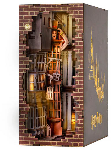 Predstavlja slavnu čarobnjačku trgovačku ulicu iz Harry Potter svijeta, knjižni kutak koji izgleda kao mali svijet unutar police s knjigama, dekoraciju, a ne klasičnu igračku.