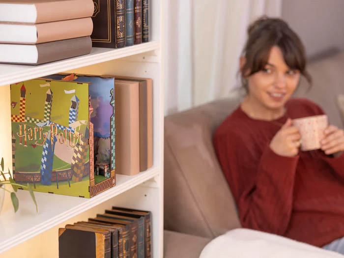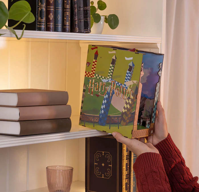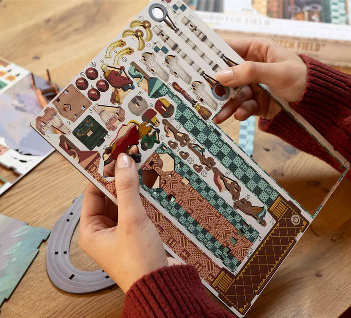 Revell Tiny Adventures Harry Potter – Quidditch Field (Igralište metloboja), detaljan 3D book nook model koji prikazuje poznati sportski teren iz svijeta Harryja Pottera. Ovaj set se sastavlja u minijaturnu scenu Quidditch utakmice, a dizajniran je tako da se postavi između knjiga i stvori efekt skrivenog čarobnog svijeta. Poznato Quidditch igralište iz Hogwarts svijeta, scene u akciji s igračima na metlama, mini stadion u obliku diorame koja izgleda kao mali svijet u polici s knjigama. Harry Potter Quidditch Field Book Nook – dekorativni i kolekcionarski LED 3D model za slaganje, idealan za fanove Harry Pottera i ljubitelje detaljnih diorama.