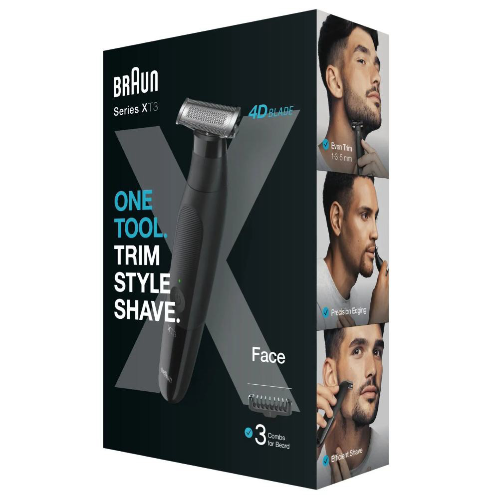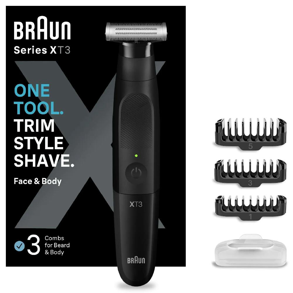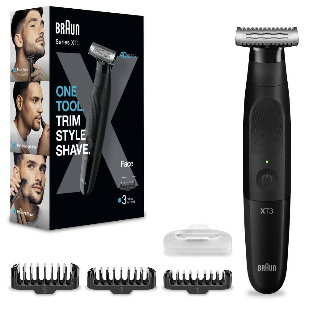 Braun XT 3100 je pouzdan i jednostavan trimer za muškarce koji žele uredan i njegovan izgled bez komplikacija. Zahvaljujući oštricama visokih performansi i preciznim nastavcima, savršeno oblikuje bradu, brkove i dlačice na području lica i tijela. Trimer je jednostavan za korištenje i održavanje te omogućuje ugodno iskustvo bez iritacija. Kompaktna i lagana konstrukcija pruža dobru kontrolu i preciznost pri svakom potezu, dok snažna baterija omogućuje dovoljno vremena za uređivanje između punjenja. Dizajniran je za svakodnevnu praktičnu upotrebu, bilo kod kuće ili na putovanju. Braun XT 3100 nudi izvrsnu ravnotežu između jednostavnosti, kvalitete i pouzdanosti – idealan izbor za muškarce koji žele brzo i učinkovito uređivanje.