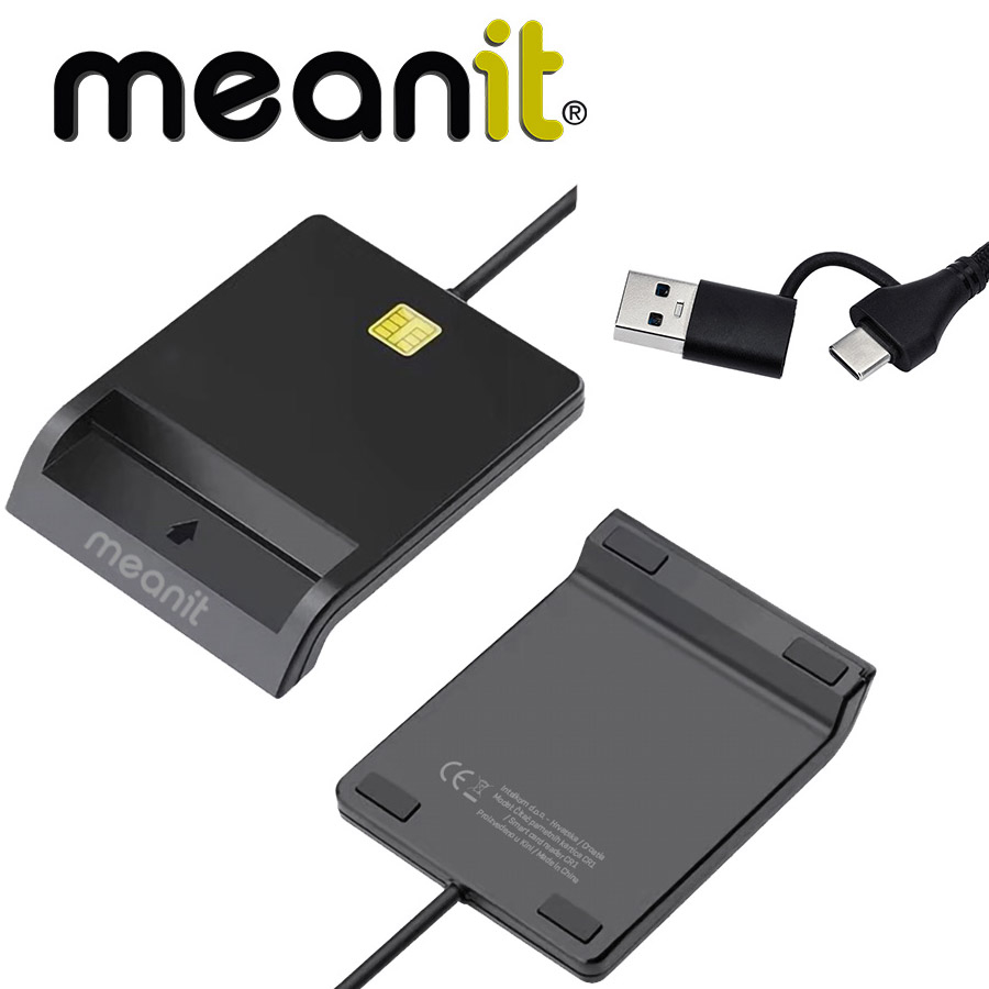 Čitač pametnih kartica MEANIT CR1 USB - A 2.0 i USB - C - crni