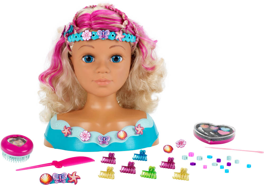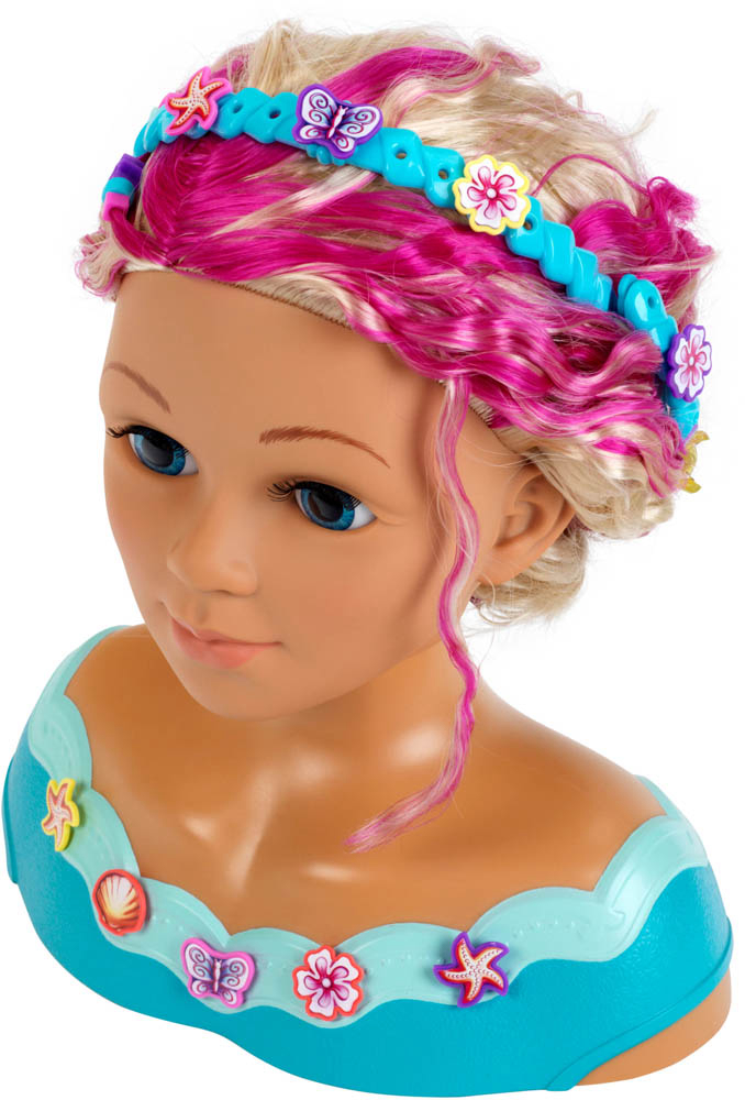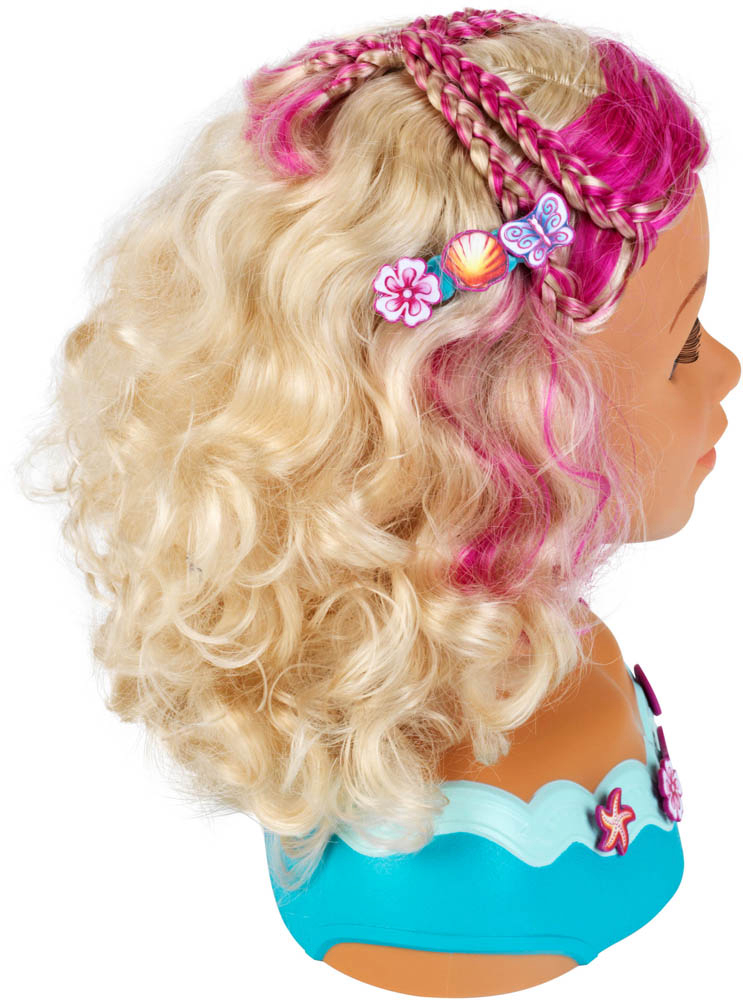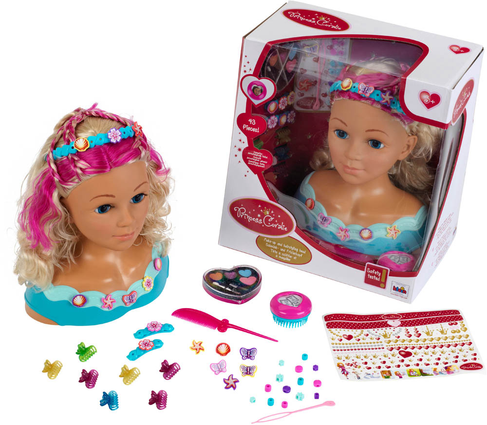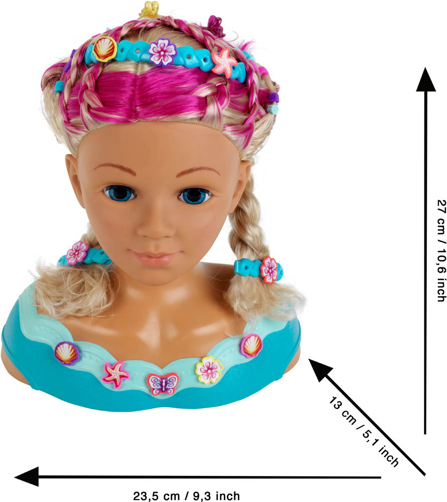 Dječja glava za šminkanje i frizuru Klein Princess Coralie Mariella (5398) će ubrzati puls svakog stilista! Ova princeza im dopušta da s njenom valovitom plavom kosom rade što god žele -ispletu je, skupe je ukosnicama i pričvrste je kopčama. Mladi vizažisti mogu se čak okušati i u šminkanju – uključen je dermatološki testirani kozmetički set. Usput, za sve ambiciozne frizere - kosa joj se može prati, kao i lice. Princeza je spremna uroniti u šarenu zabavu i uljepšati se kopčama i naljepnicama. Dimenzije: 23,5 cm x 13 cm x 27 cm. Preporučena dob: 3 ili više godina.
