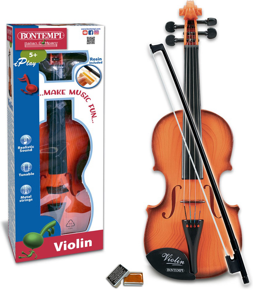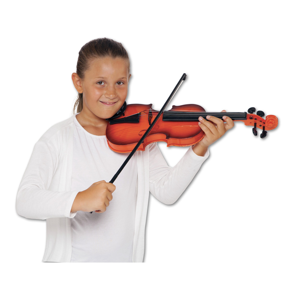 Dječja violina s 4 metalne žice koje se mogu podešavati daje realističan zvuk. Kolofonij za violinu uključen u pakiranje. Violina je dužine 49 cm. Preporučena dob: 5 ili više godina.