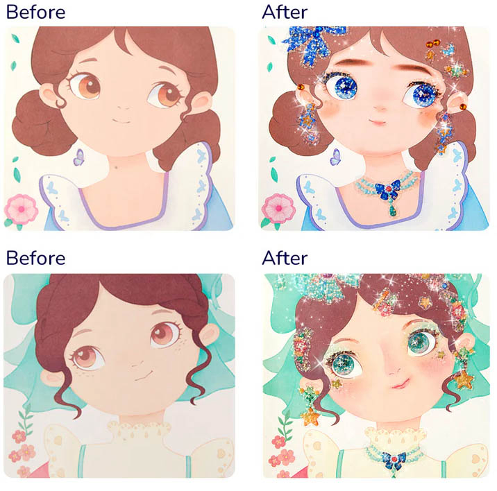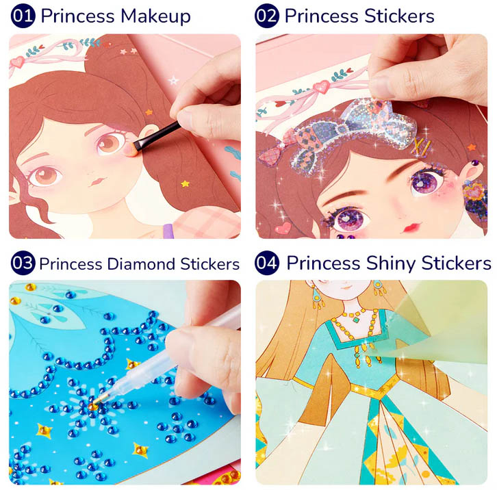 Dress up set 3u1 – Princess Fantasy Makeup pruža sve što je potrebno za čarobnu transformaciju u princezu u jednom setu. Kombinira šminkanje, ukrašavanje naljepnicama i dodatke, omogućujući djeci kreativnu igru kroz četiri različita moda. S više od 200 dodataka i šest šarenih paleta šminke, pruža neograničene mogućnosti stiliziranja. Set se rasklapa u organizirani stol za uljepšavanje, pružajući realističan doživljaj igre. Kompaktno i moderno pakiranje olakšava nošenje, čineći ga idealnim za igru kod kuće i na putu. Sadržaj pakiranja: 20 predložaka za šminkanje princeza, 4 predloška s dijamantnim naljepnicama, 4 predloška sa sjajnim naljepnicama, 4 seta naljepnica, 6 boja, 900 dijamanata, 10 tkanina, 1 tanjur, 1 olovka za nanošenje dijamanata, 1 ljepilo, 2 kista. Preporučena dob: 3 ili više godina.