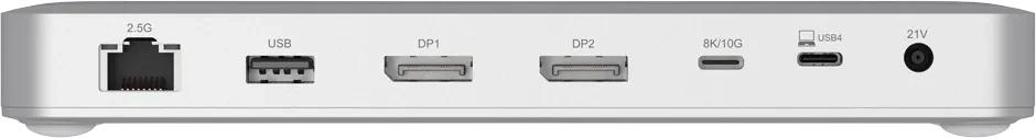 | Ethernet, 3 x USB-A, 2 x DP1.4, 2 x USB-C, USB4, DC-IN | |