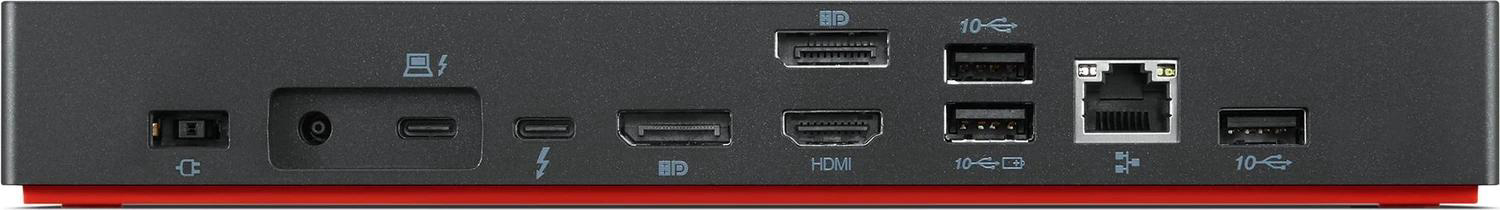 Lenovo dock Thunderbolt 4, ThinkPad Docking Station 135W, crna boja, 450 grama, napajanje: 135W, izlaz: max. 100W, Slim Tip kabel, 1xAudio In/Out, 1xRJ45, 2xDisplay Port, 1xHDMI, 4xUSB-A, 1xUSB-C, 2xThunderbolt 4