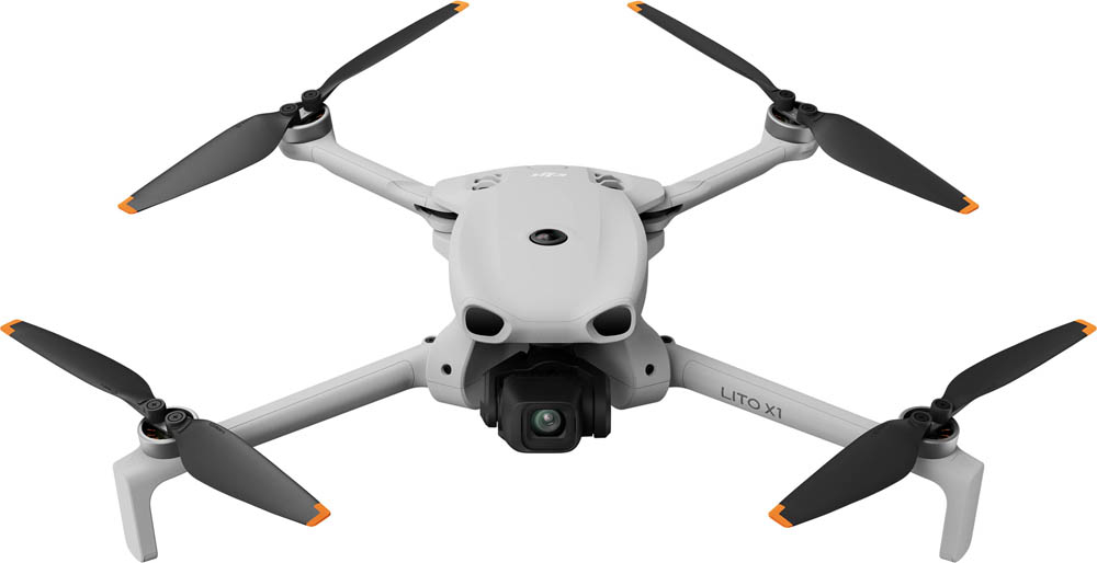 4. Korištenjem inteligentne baterije za let, maksimalno vrijeme leta je 36 minuta. To se mjeri u kontroliranom okruženju aerotunela pod uvjetima ekvivalentnim radu bez vjetra i nadmorskoj visini, s dronom koji leti naprijed konstantnom brzinom od 21,6 km/h, radnjom izbjegavanja prepreka postavljenom na kočenje i u načinu rada za fotografiranje, do prisilnog slijetanja zbog pražnjenja baterije. Inteligentna baterija za let Plus produžuje vrijeme leta na 52 minute pri letu naprijed konstantnom brzinom od 21,6 km/h. Ova se baterija prodaje zasebno i također je uključena u DJI Lito X1 Fly More Combo Plus (DJI RC 2).