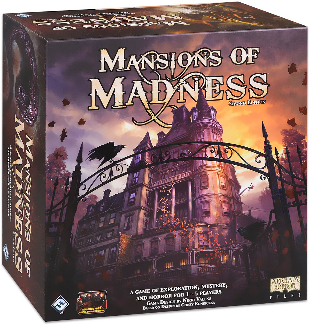 Mansions of Madness Second Edition je potpuno kooperativna, aplikacija-vođena društvena igra horora i misterije za jednog do pet igrača koja se odvija u istom svemiru kao Eldritch Horror i Elder Sign. Neka vas impresivna aplikacija vodi kroz zastrte ulice Innsmoutha i uklete hodnike Arkhamovih ukletih vila dok tražite odgovore i predah. Osam hrabrih istražitelja spremno je suočiti se s četiri scenarija straha i misterije, prikupljajući oružje, alate i informacije, rješavajući složene zagonetke te boreći se protiv čudovišta, ludila i smrti. Otvorite vrata i zakoračite u ove jezive Mansions of Madness: Second Edition. Bit će potrebno više od pukog preživljavanja da bi se pobijedilo zlo koje terorizira ovaj grad. Broj igrača: 1-5, Vrijeme igranja: 120-180 min. Preporučena dob: 14 ili više godina.