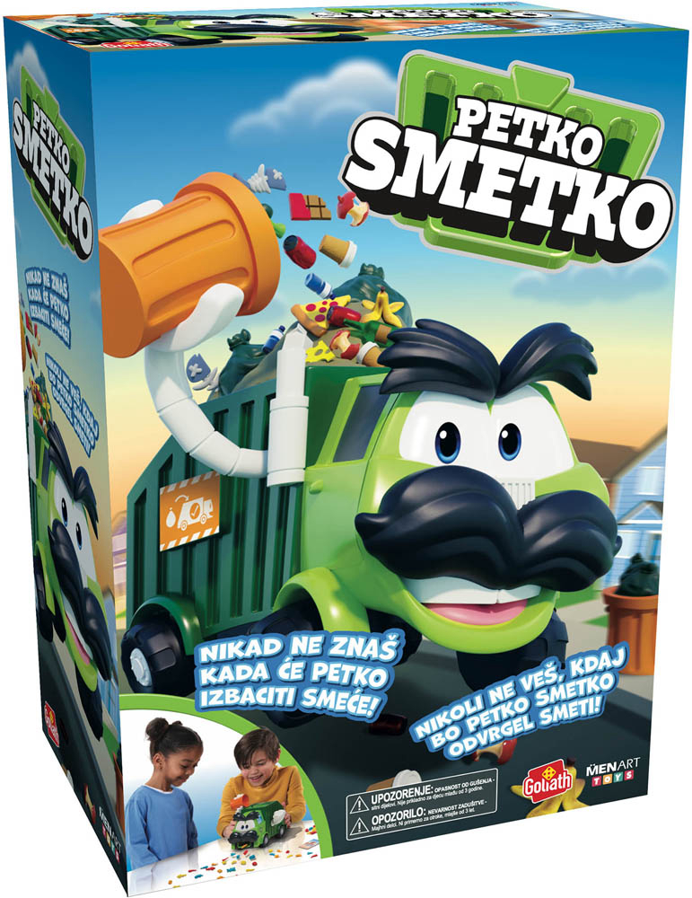 Zabavni mehanizam Petka Smetka stvara realno iskustvo - samo mu okrenite ruku i gledajte kako se kanta za smeće diže te se smeće odlaže kamion. Pripazite - ovaj bi se kamion mogao prepuniti i izbaciti sve smeće! Budite prvi koji će se riješiti svog smeća bez da ga Petko Smetko izbaci i vi ste pobjednik igre! Društvena igra Petko Smetko namijenjena je za 2 do 4 igrača. Preporučena dob: 4 ili više godina.