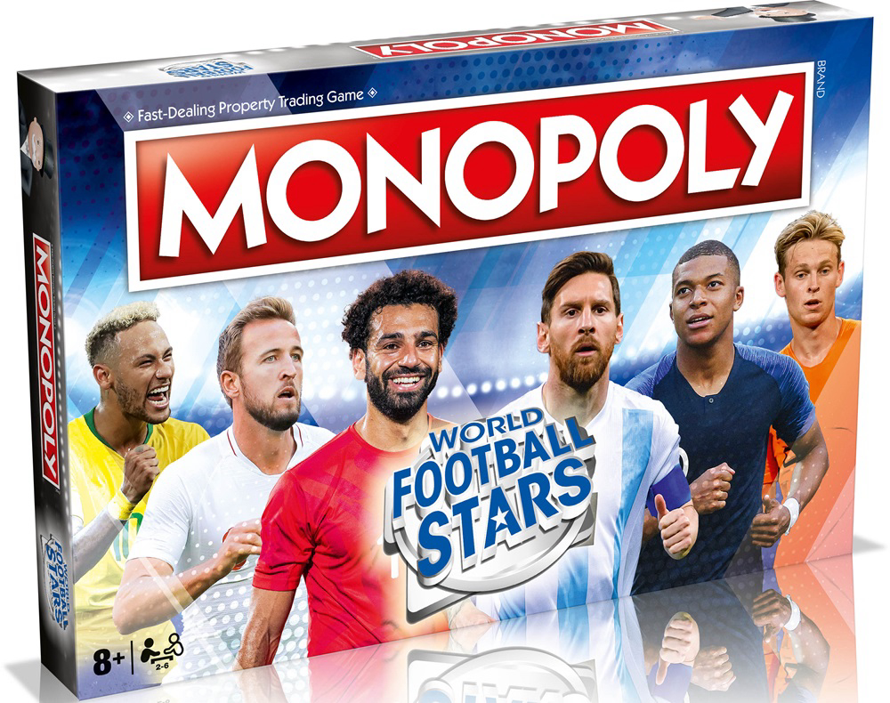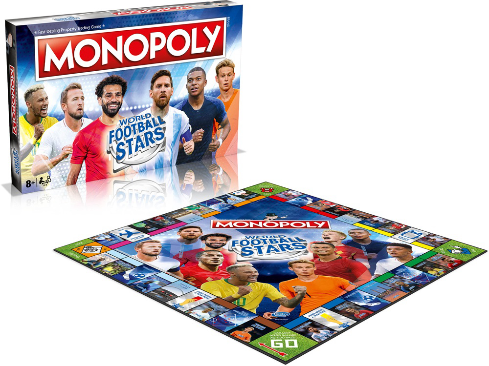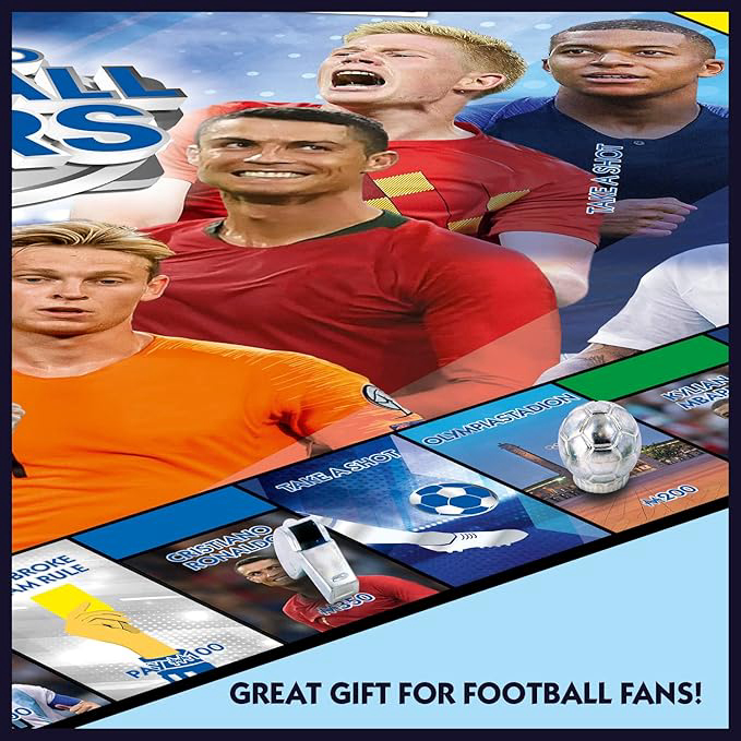 Golovi, obrane, trofeji - proživite sve to u ovom spektakularnom novom izdanju MONOPOLY: World Football Stars! Izađite na teren s ovim potpuno novim izdanjem igre brze trgovine nekretninama, dok se natječete u kupnji tribina, stadiona i svojih omiljenih suvremenih igrača, pokušavajući pritom izbjeći crvene i žute kartone! S Cristianom Ronaldom, Lionelom Messijem, Antoineom Griezmannom, Mohamedom Salahom i mnogim drugima, cilj igre je proširiti nogometno svoje carstvo i izgraditi tim iz snova dok pokušavate nadmudriti protivnike i naplatiti im najamninu za napad na Vaše igrače. Uzmite karticu Udari loptu ili Upute za tim za dodatne nagrade i kazne i budite prvi koji će kupiti klasične stadione i lokacije. Ovo izdanje MONOPOLY-a World Football Stars zasigurno će oduševiti