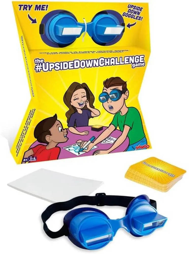 Upside Down Challenge (Obrnuti izazov) – zabavnu party igru u kojoj igrači nose posebne naočale koje okreću ili iskrivljuju vid, pa čak i najjednostavniji zadaci postaju vrlo teški i smiješni. Upside Down Challenge je brza i zabavna društvena igra koja pretvara jednostavne zadatke u kaotične izazove zbog obrnutog pogleda. Idealna je ako tražiš laku party igru koja uvijek nasmije ekipu. Broj igrača: 2 do 6. Preporučena dob: 8 ili više godina.