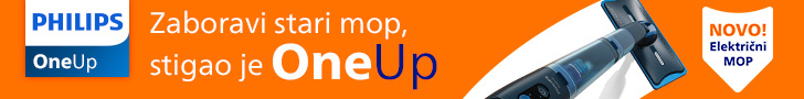 Philips OneUp električni mop pruža 2x čišće podove 2x brže. Odvodi prljavu vodu dok istovremeno ispušta čistu vodu na pod za besprijekorni sjaj. Čista i prljava voda uvijek su odvojene zahvaljujući integriranim spremnicima za vodu. Idealan za stan do 125 m2, zahvaljujući pokrivenosti od 50 m2 s jednim spremnikom vode. Čisti tvrde podove uključujući osjetljive i neupijajuće podove poput laminata, pločica bez teksture, vinila, drvenih podova poput parketa, lijevanih podova i kamena.