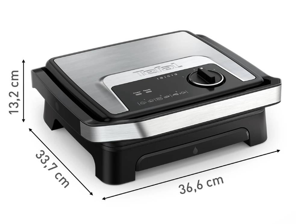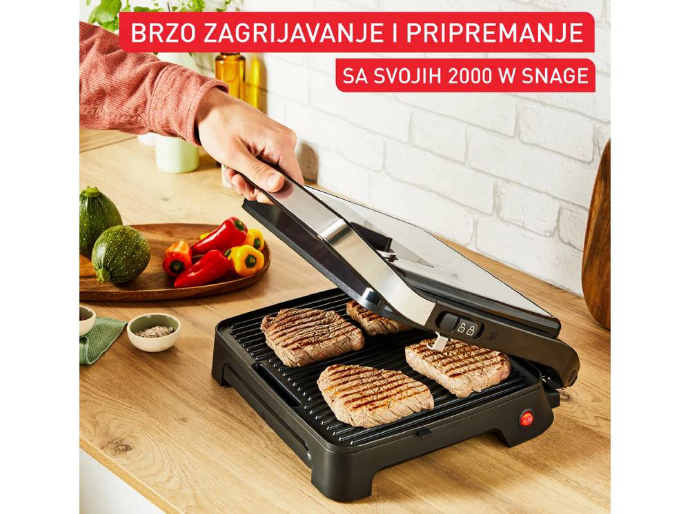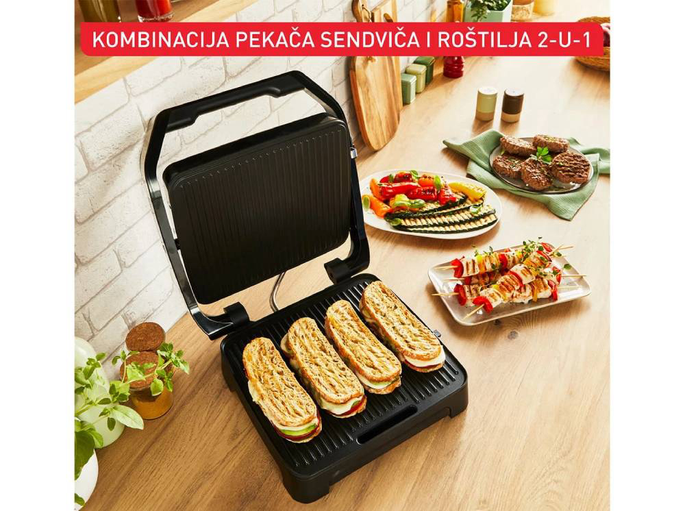 Otkrijte Inicio Adjust, snažan pekač sendviča panini i roštilj 2-u-1 kojim možete brzo i jednostavno pripremiti širok raspon ukusnih jela! Od običnih sendviča i sendviča panini do povrća s roštilja, ribe i mesa prilagodljivim termostatom omogućavaju se potpuna raznovrsnost i precizno pripremanje svakog puta. Uživajte u brzim rezultatima, jednostavnom čišćenju i uštedi prostora! Idealan je za od četiri (4) do šest (6) osoba.