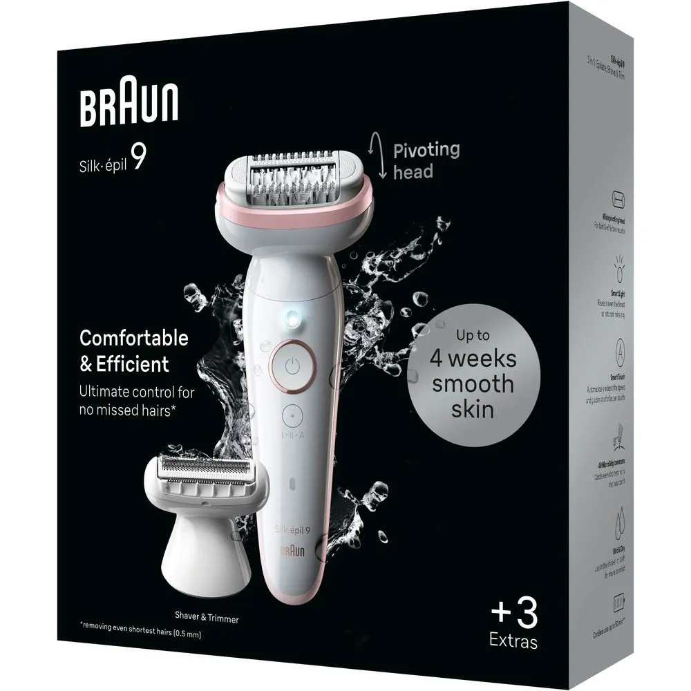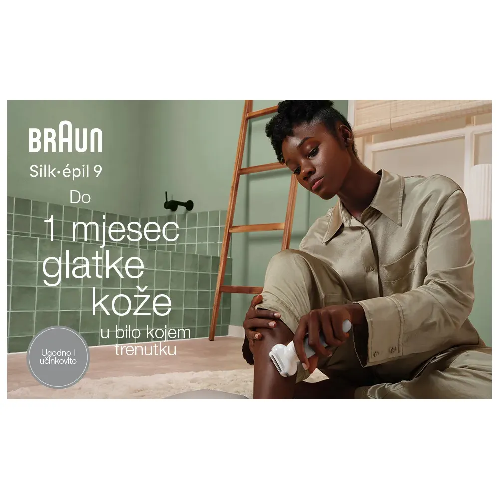 Braun Silk-épil 9 osigurava do mjesec dana glatke kože, bilo kada i bilo gdje. Svojom širokom glavom, ovaj bežični epilator za suhu i mokru upotrebu s lakoćom prati vaše konture. Njegovih 40 pinceta MicroGrip hvata čak i dlačice duljine samo 0,5 mm, osiguravajući tako dugotrajnu glatkoću kože. Uživajte u koži glatkoj kao nakon salonskog tretmana, uz vrhunsku kontrolu zahvaljujući preciznoj dršci koja udobno sjedi u ruci. Zaboravite na čekanje da dlačice izrastu na dostatnu duljinu da bih se moglo ukloniti drugim proizvodima za uklanjanje dlačica poput voska. Ovaj bežični epilator dizajniran je za praktičnost te eliminira potrebu za čišćenjem ili zakazivanjem termina u salonu.