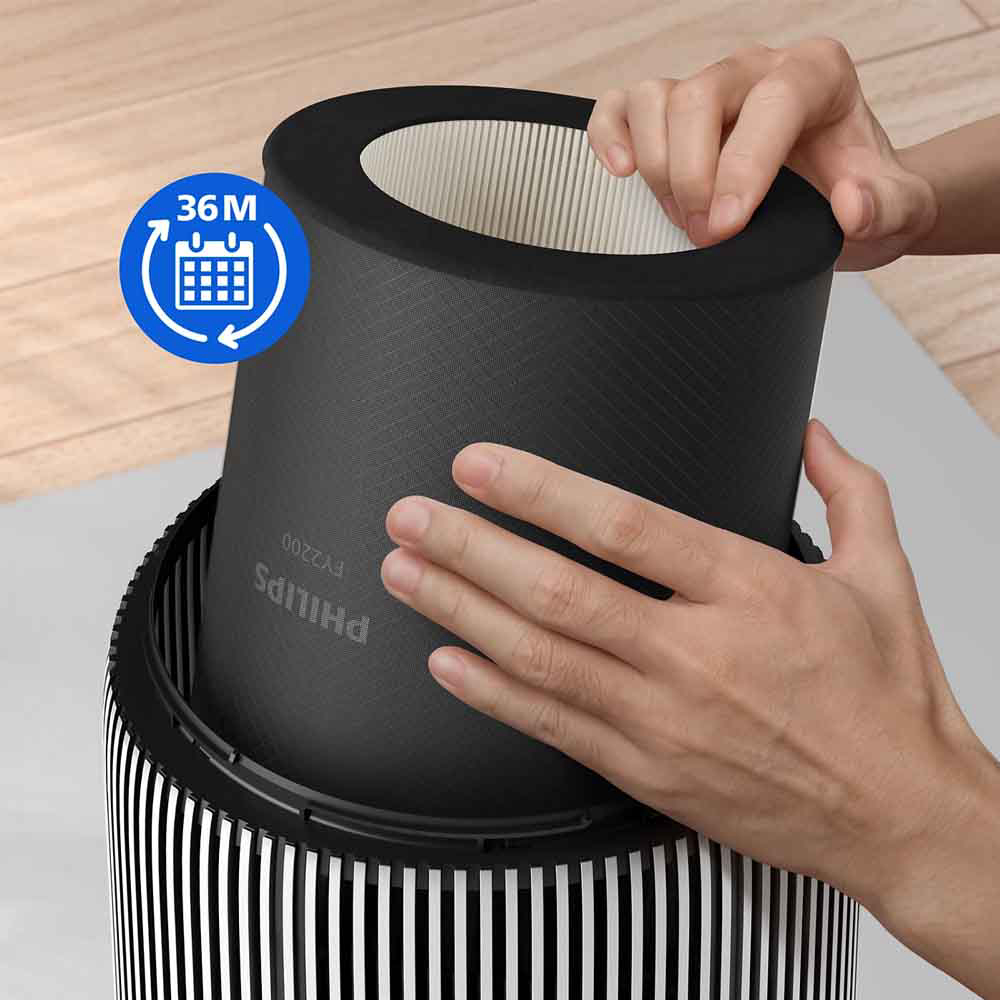Originalni zamjenski filtri za pročišćivač zraka: 3-u-1 HEPA NanoProtect, aktivni ugljen i predfiltar za zaštitu od zagađenja, peludi, prašine, životinjske prhuti i virusa. Troslojna filtracija, koja se sastoji od predfiltra, HEPA NanoProtect i aktivnog ugljena, hvata 99,97 % čestica veličine 0,003 mikrona (1) i štiti vas od zagađivača, virusa, alergena, bakterija i mirisa.