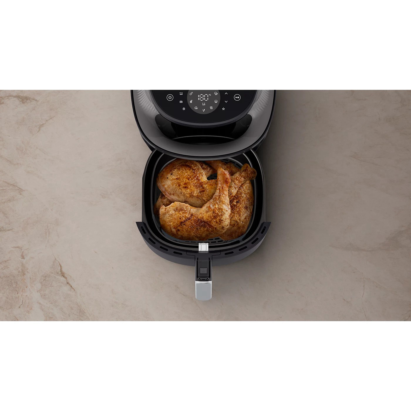 Ne morate stati na prženju uz 16 funkcija, od onih za brzo pečenje do sati pirjanja. Ukusni domaći obroci u nekoliko jednostavnih koraka. Kroz elegantni prozorčić možete vidjeti kad sve bude savršeno pripremljeno, hrskavo i mekano. Kapacitet dovoljan za spremanje svih obiteljskih obroka. Dodirni zaslon jednostavan za uporabu ima 12 prethodno postavljenih funkcija koje možete odabrati. Promatrajte hranu dok kuhate i prepoznajte kad je savršeno pripremljena. Aparati Philips Airfryer imaju premaz koji sprječava lijepljenje i uklonjive dijelove koji se mogu prati u perilici posuđa, omogućujući vam da manje vremena provodite čisteći.